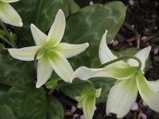 A rarer species occurring in California; ivory coloured flowers with a greeny-yellow base;